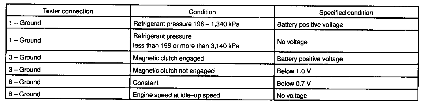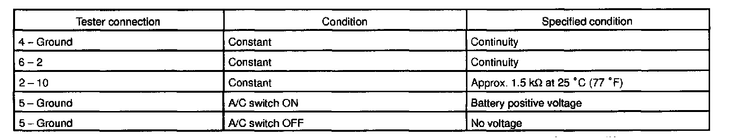 b. Disconnect the amplifier connector and inspect the connector on wire harness side, as shown in the chart.