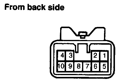 c. Connect the connector to amplifier and inspect wire harness side connector from the back side, as shown in the chart.