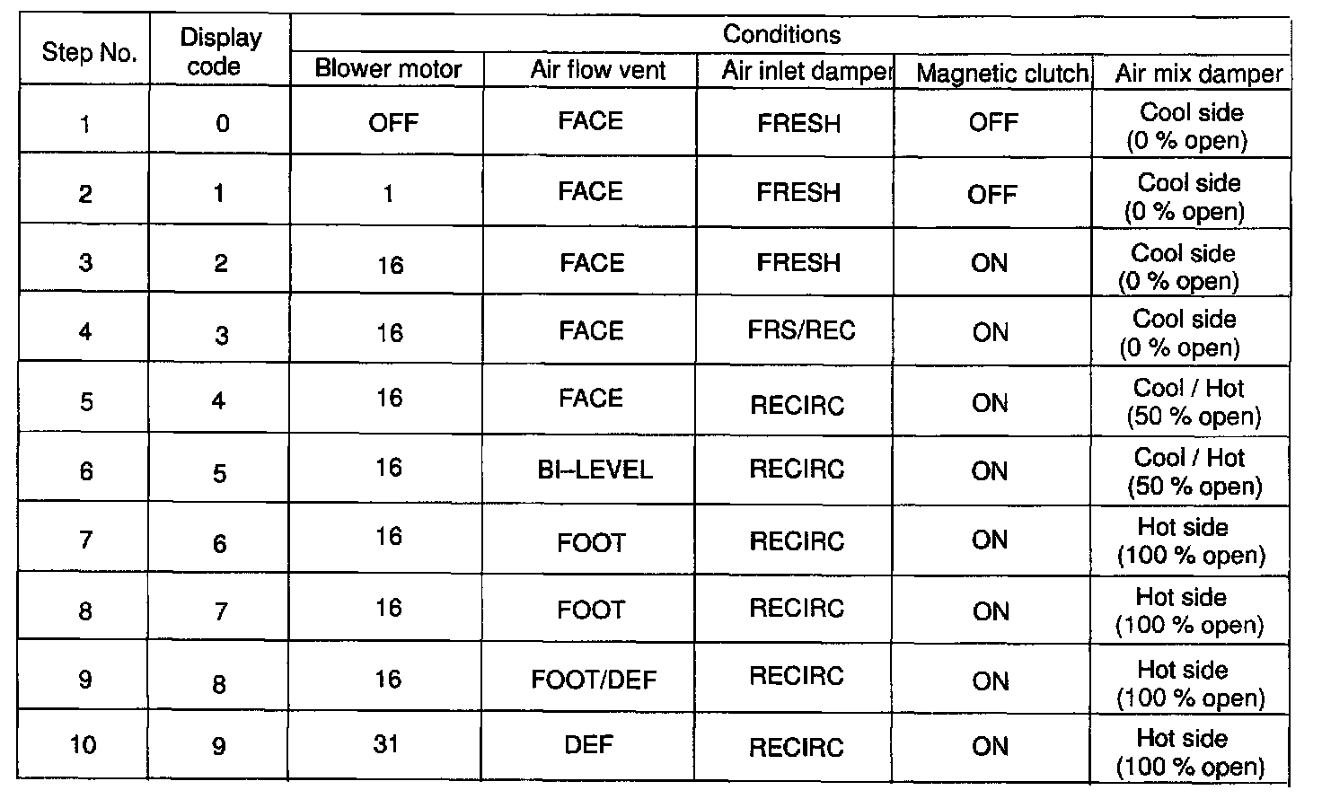 b. Since each damper, motor and relay automatically operates at 1 second intervals beginning in order from 10 in the temperature display, check the temperature and air flow visually and by hand.