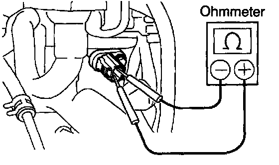 b. Using an ohmmeter, measure the camshaft position sensor resistance between terminals.