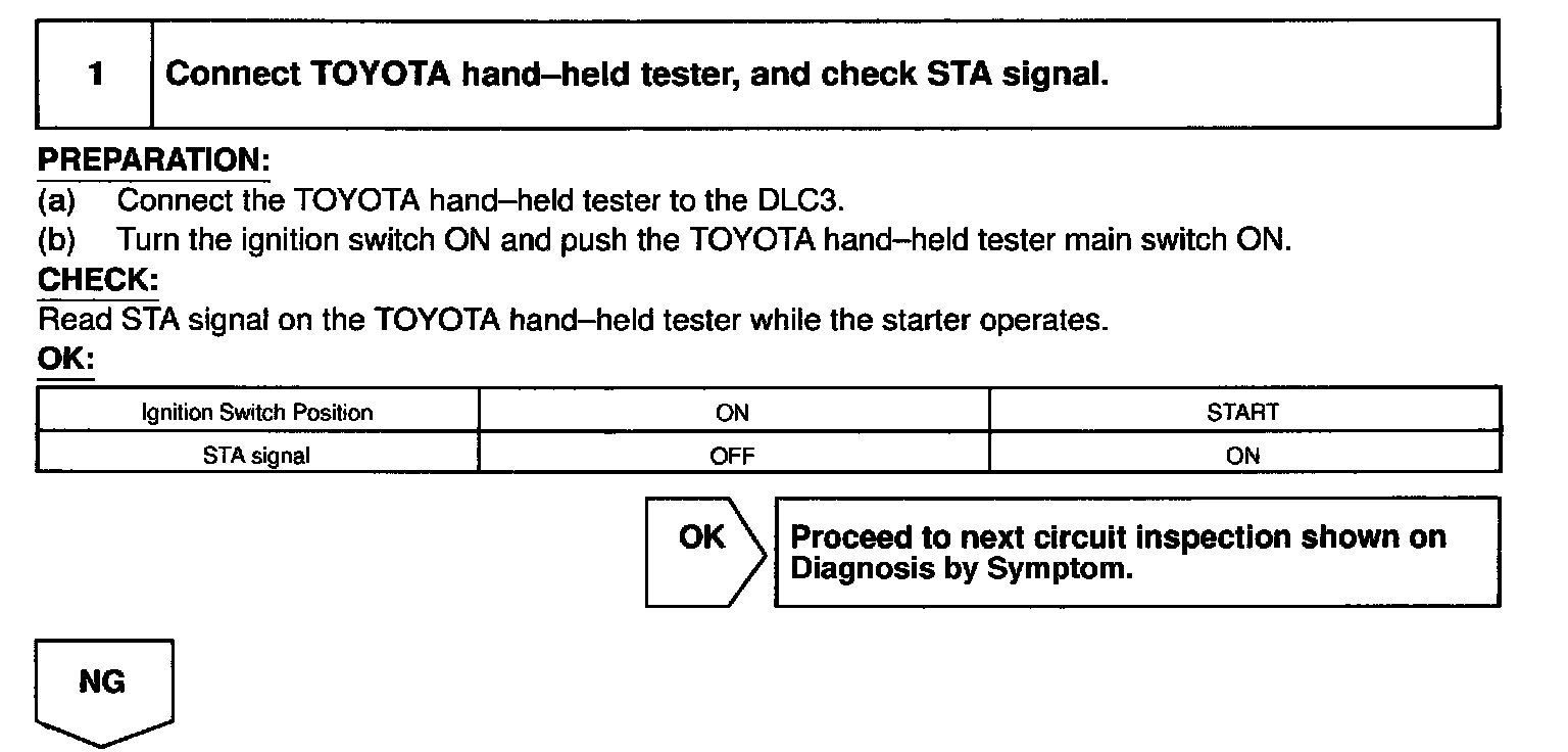 HINT: This diagnostic chart is based on the premise that the engine is cranked normally If the engine is not cranked, proceed to the problem symptoms table. Symptom Related Diagnostic Procedures