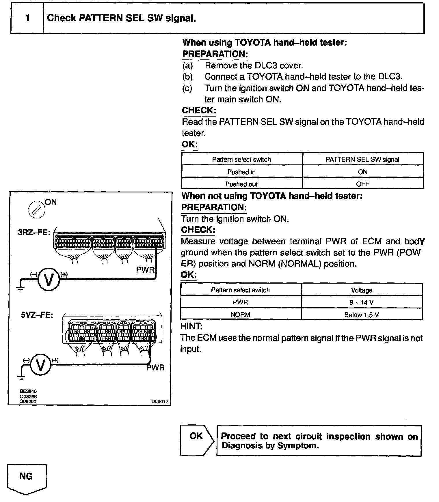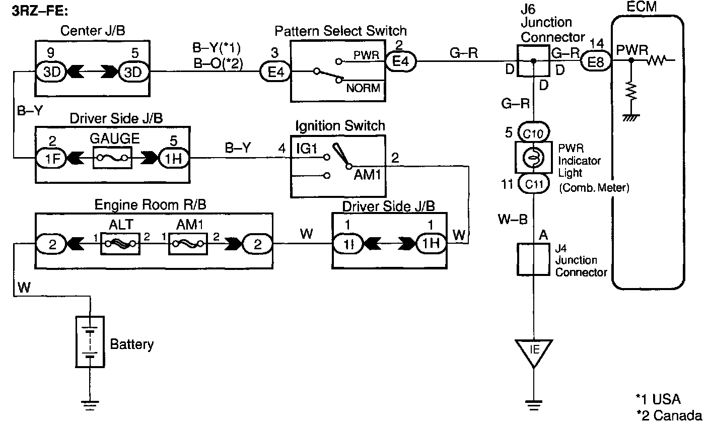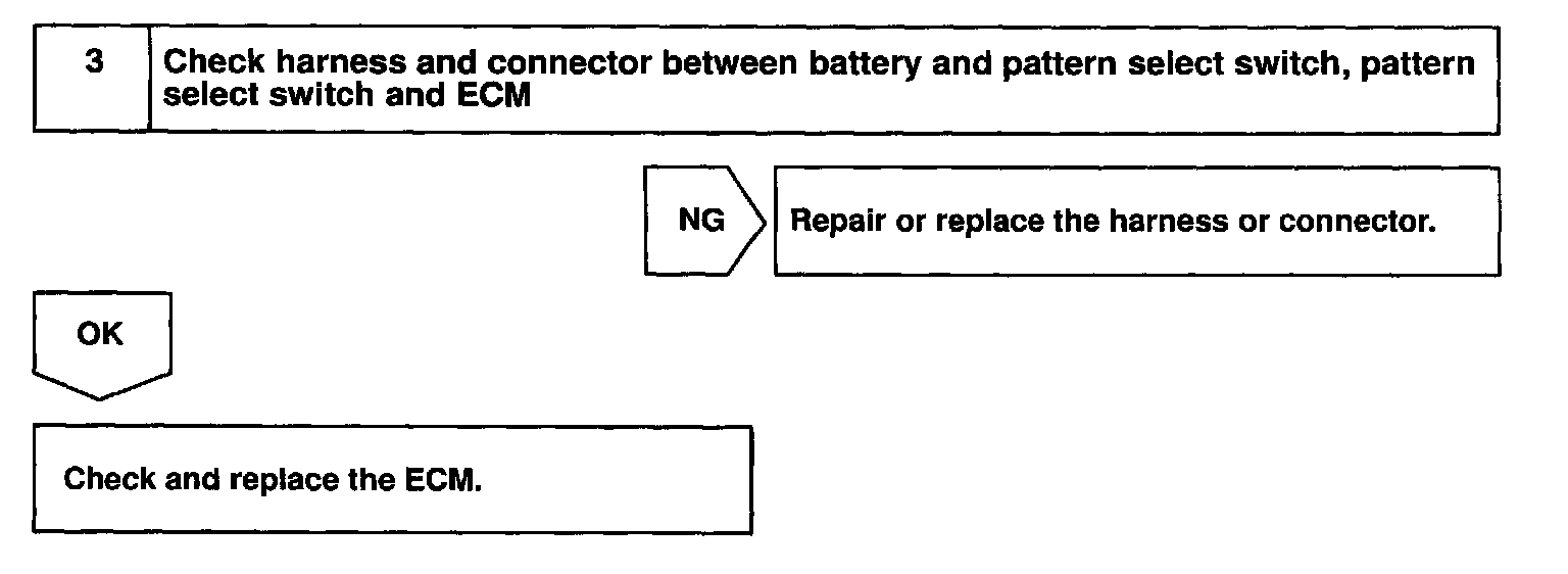 CIRCUIT DESCRIPTIONThe ECM memory contains the shift programs for the NORMAL and POWER patterns, 2 position, L position and the lock-up patterns. Following the programs corresponding to the signals from the pattern select switch, the park/neutral position and other various sensors, the ECM switches the solenoid valves ON and OFF, and controls the transmission gear change and the lock-up clutch operation.