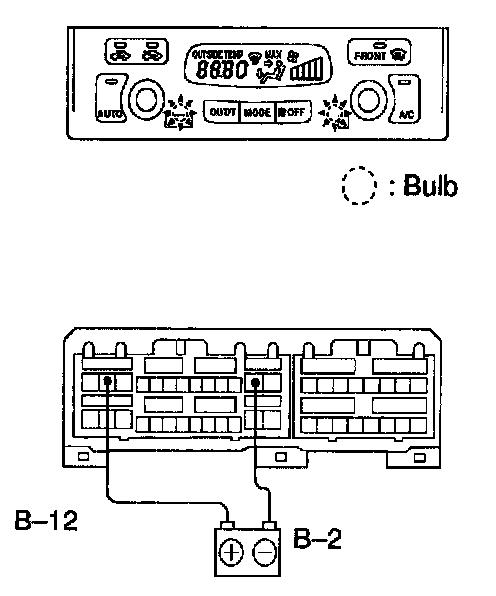 Connect the positive (+) lead from the battery to terminal B-12 and the negative (-) lead to terminal B-2, then check that the illumination lights up.