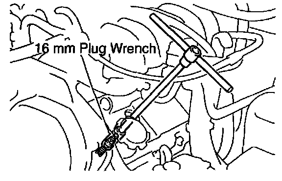 g. Using a 16 mm plug wrench, install the spark plug.