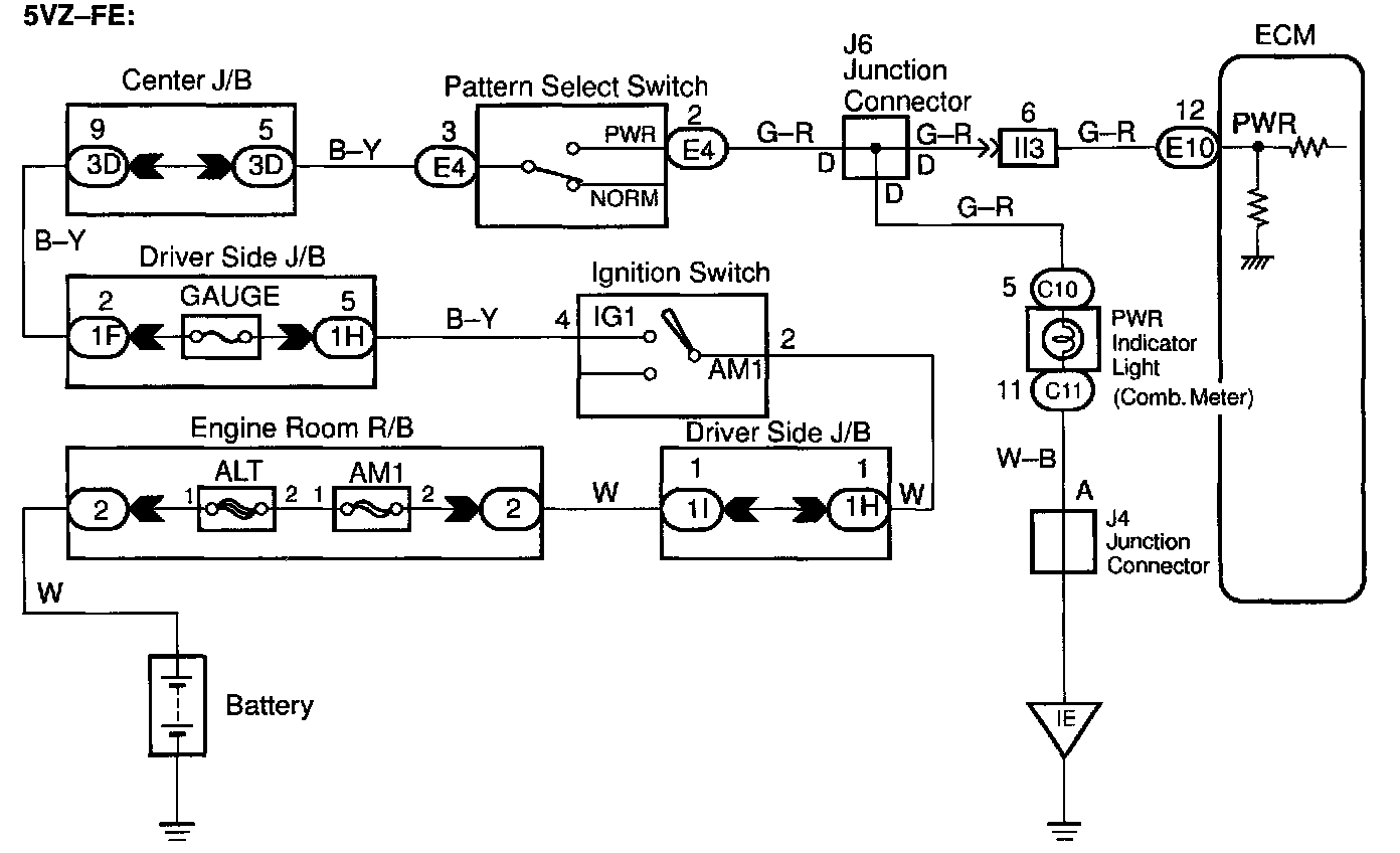 CIRCUIT DESCRIPTIONThe ECM memory contains the shift programs for the NORMAL and POWER patterns, 2 position, L position and the lock-up patterns. Following the programs corresponding to the signals from the pattern select switch, the park/neutral position and other various sensors, the ECM switches the solenoid valves ON and OFF, and controls the transmission gear change and the lock-up clutch operation.