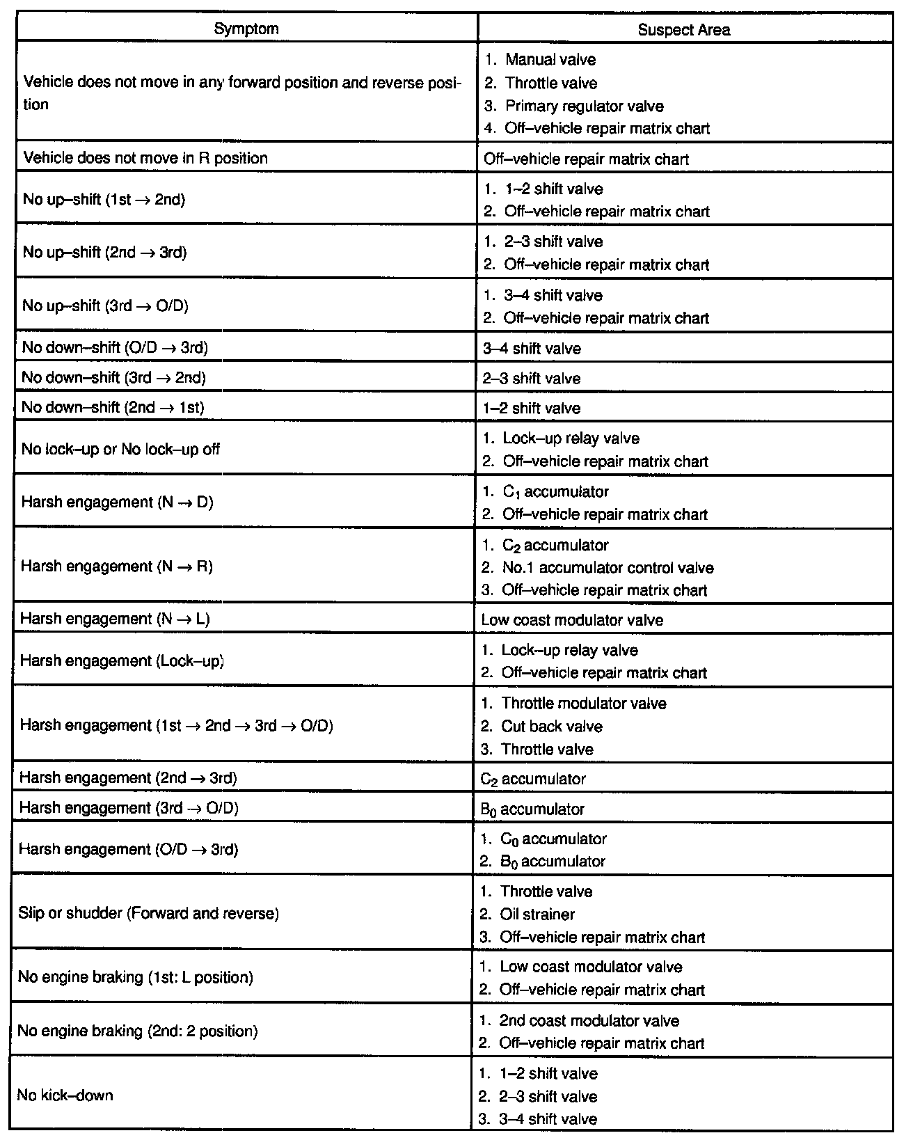 If a normal code is displayed during the diagnostic trouble code check but the trouble still occurs, check the circuits for each symptom in the order given in the charts and proceed to respective troubleshooting.The Matrix Chart is divided into 3 chapters.