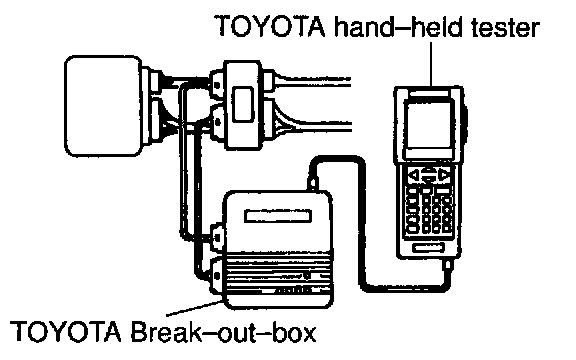 a. Hook up the TOYOTA break-out-box and TOYOTA hand-held tester to the vehicle.