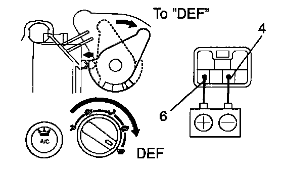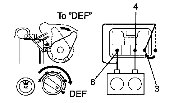 b. Turn the mode dial to the "DEF" position and check that the A/C indicator lights up.