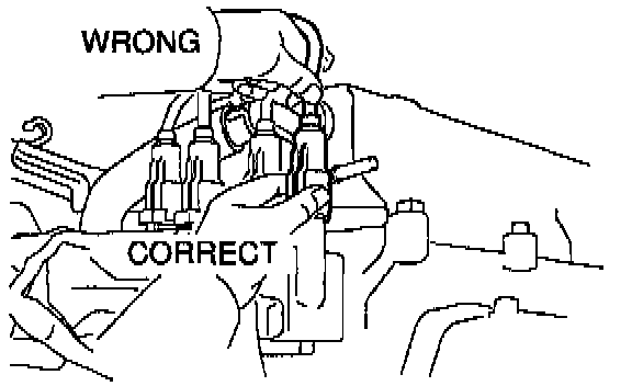 - Do not wipe any of the oil from the grommet after the high-tension cord is disconnected.