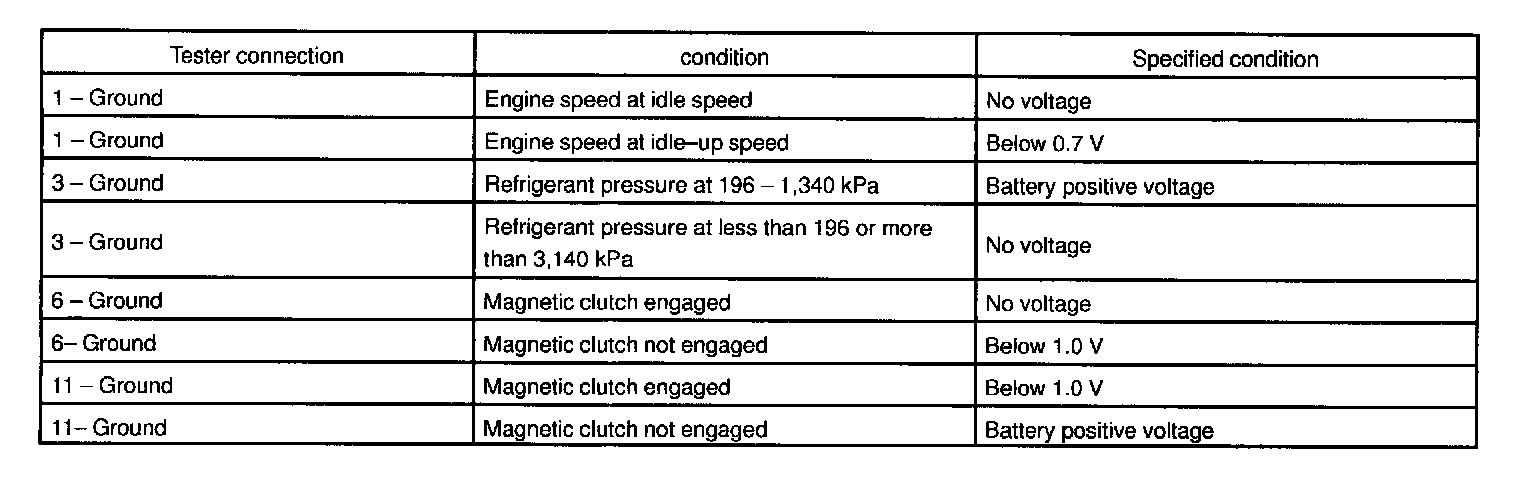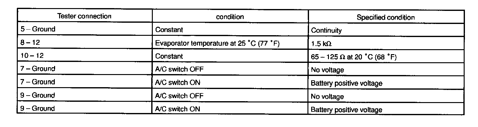b. Disconnect the connector and inspect the connector on wire harness side, as shown in the chart.