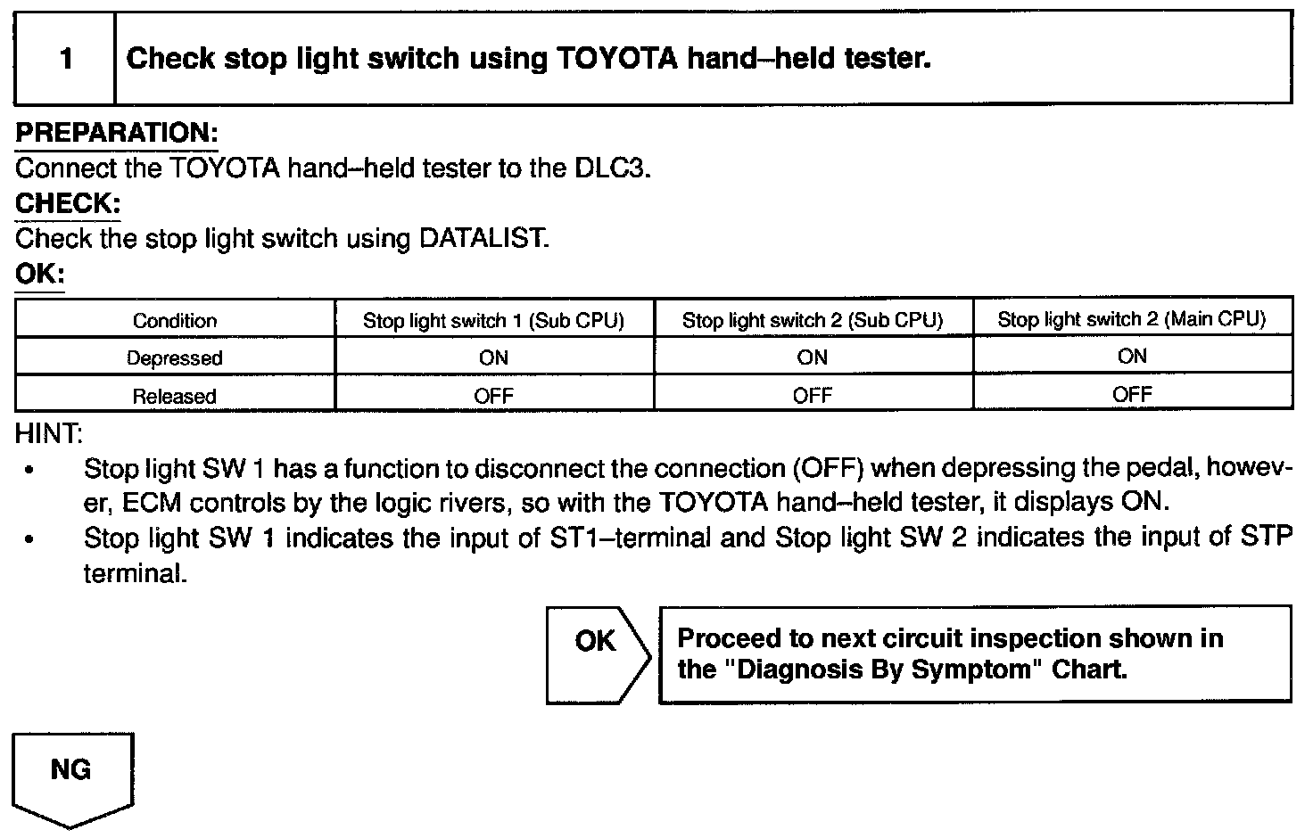 HINT: In case of using the TOYOTA hand-held tester, start the inspection from step 1 and in case of not using the TOYOTA hand-held tester, start from step 2.