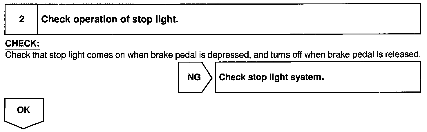 CIRCUIT DESCRIPTIONWhen the brake pedal is depressed, the stop light switch sends a signal to the ECM. When the ECM receives this signal, it cancels the cruise control.