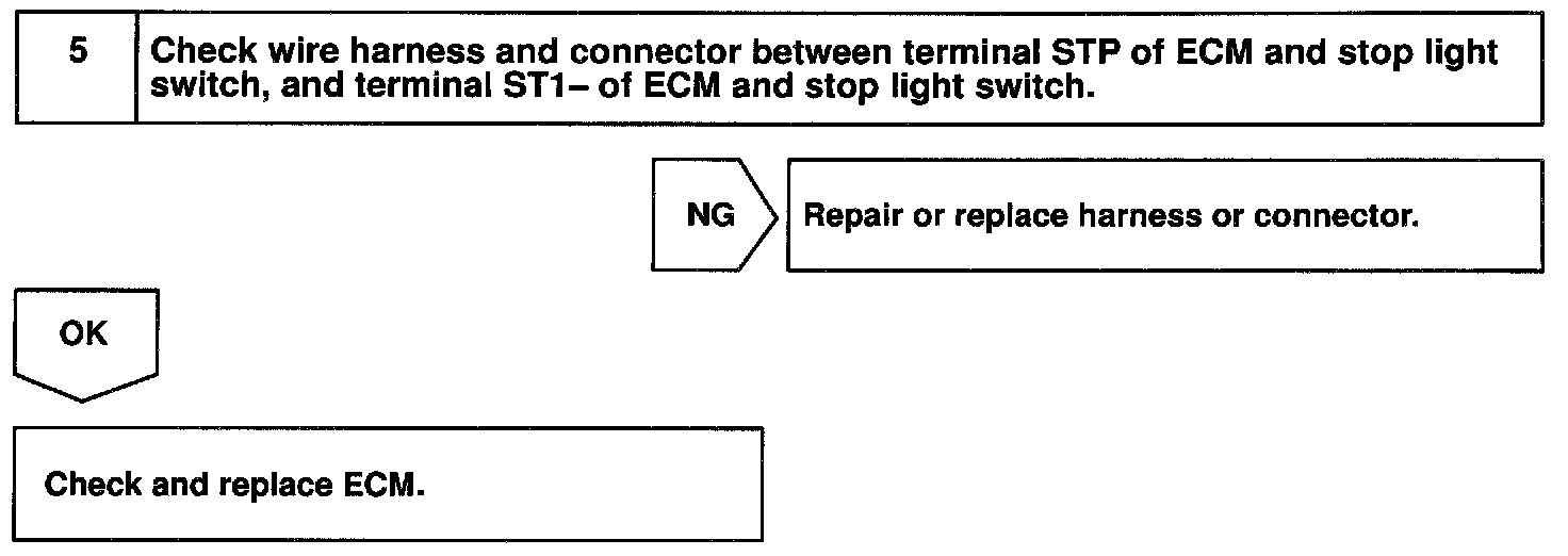 If the harness connected to terminal STP has an open circuit, terminal STP will have battery positive voltage and the cruise control will be turned OFF.