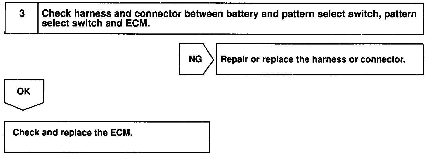 CIRCUIT DESCRIPTIONThe ECM memory contains the shift programs for the NORMAL and POWER patterns, 2 position, L position and the lock-up patterns. Following the programs corresponding to the signals from the pattern select switch, the park/neutral position and other various sensors, the ECM switches the solenoid valves ON and OFF, and controls the transmission gear change and the lock-up clutch operation.