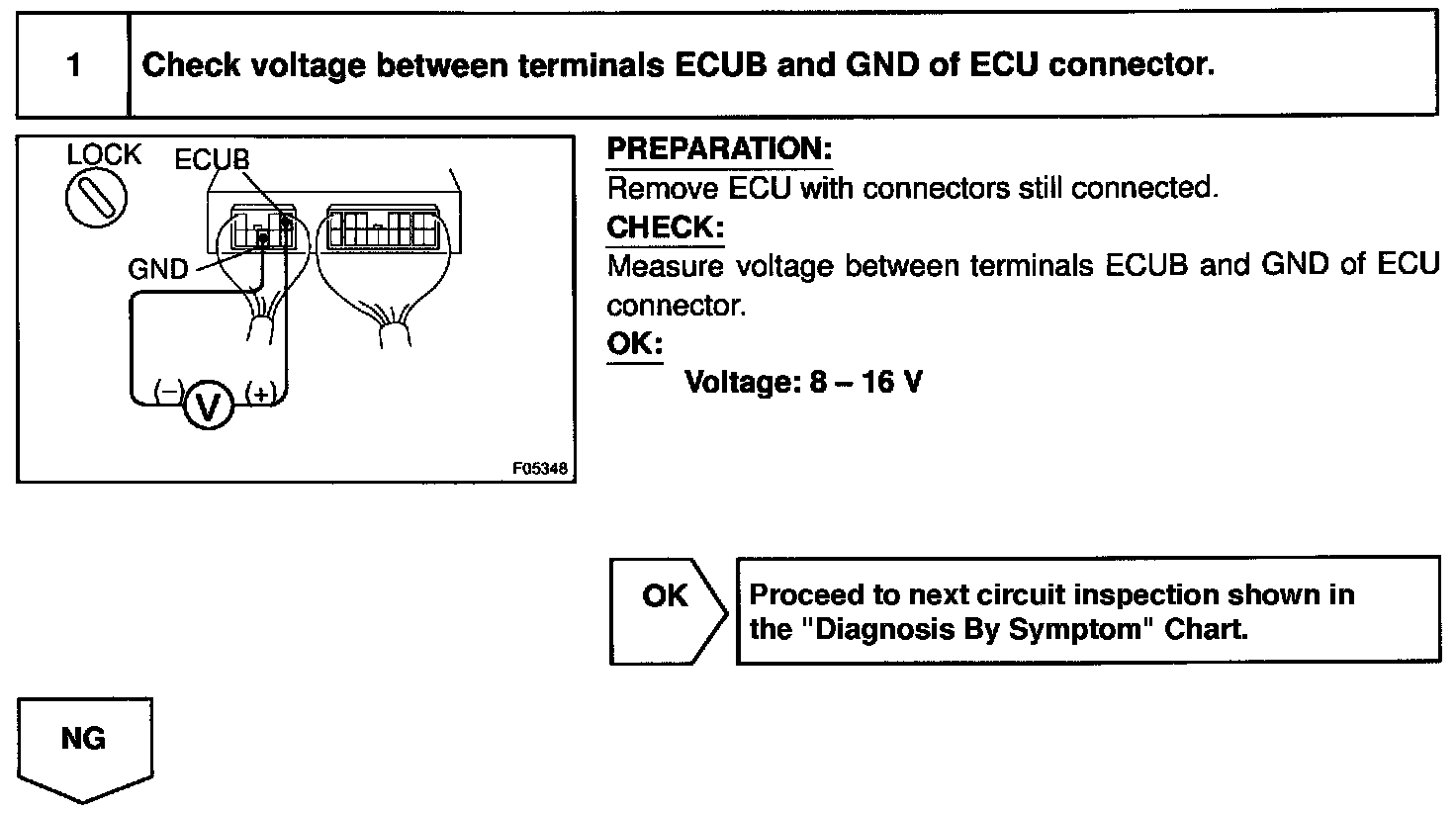 CIRCUIT DESCRIPTIONThe ECU power source supplies power to the CPU and sensors, etc. power is supplied to the ECU even when the ignition switch is in lock position.
