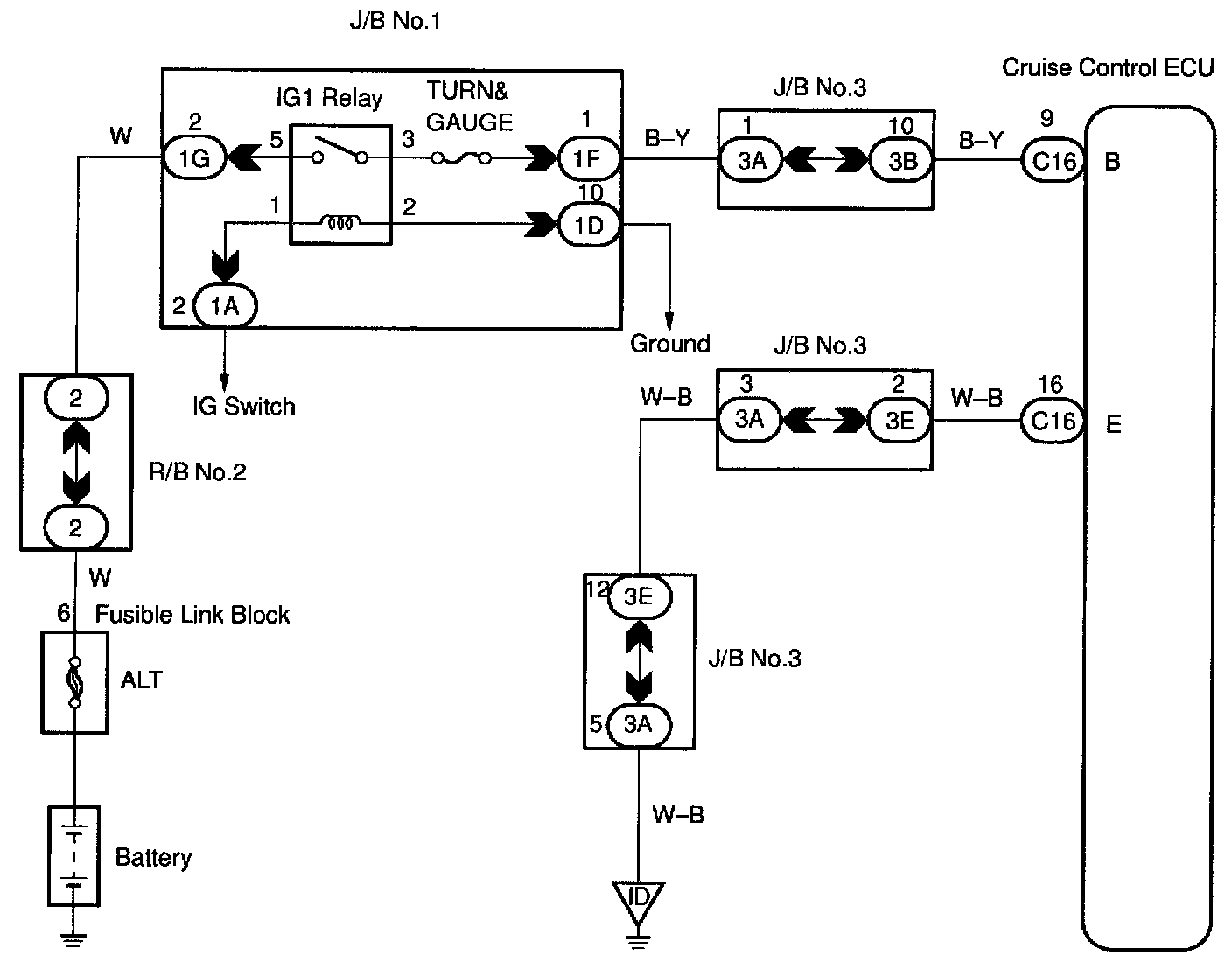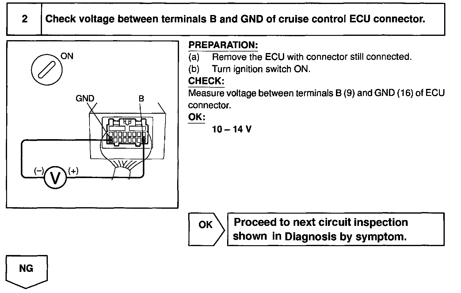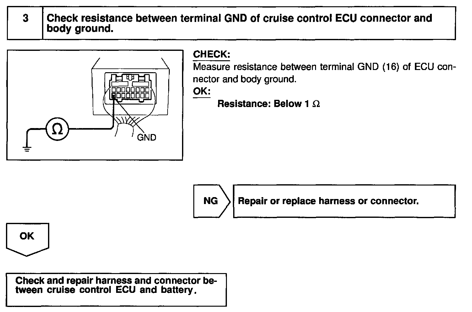 The ECU power source supplies power to the actuator and sensors, etc. when terminal GND and the cruise control ECU case are grounded.