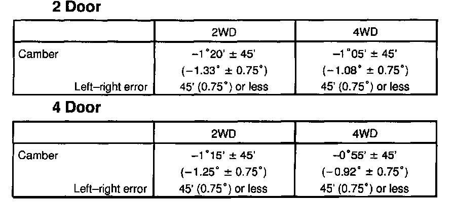 ^ The camber will change about 16' (0.27°) with each graduation of the cam.