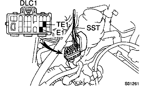 a. Using Special Service Tool(SST), connect terminals TE1 and E1 of the DLC1.
