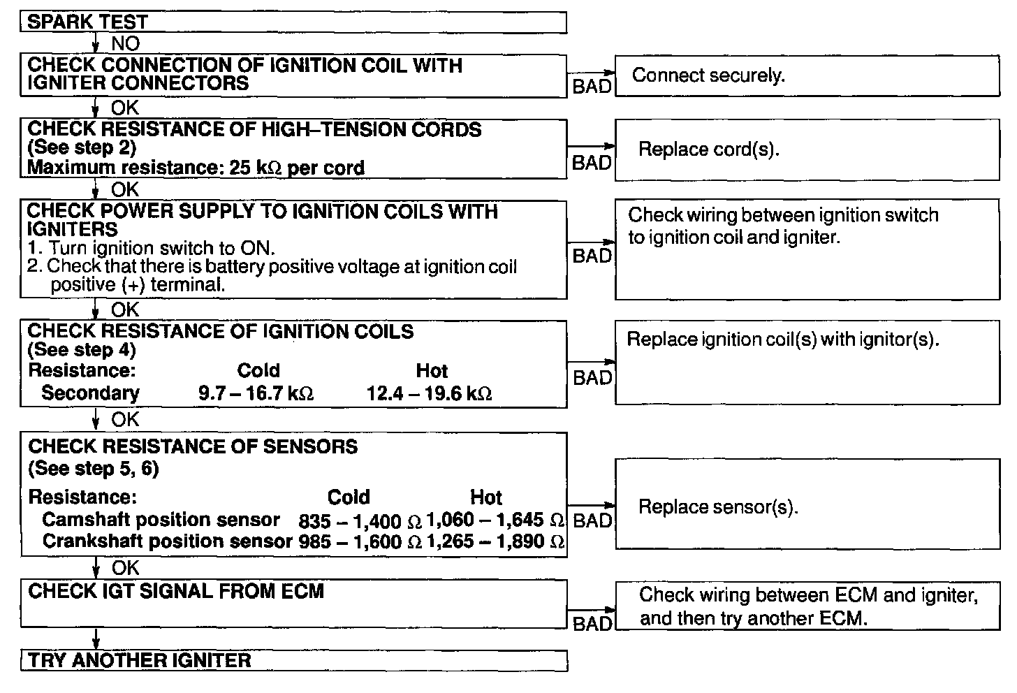 INSPECT IGNITERS AND SPARK TEST