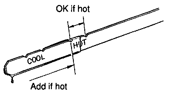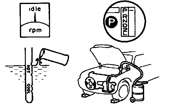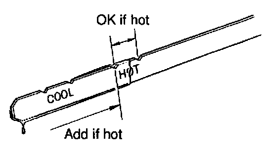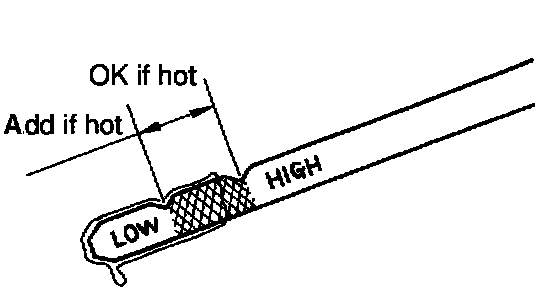 5. With the engine idling, check the fluid level. Add fluid up to the COOL level on the dipstick.