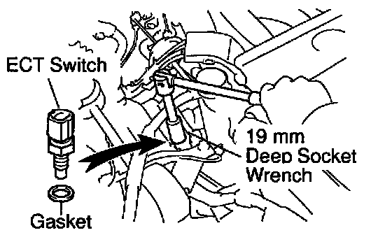 b. Using a 19 mm deep socket, install the ECT sensor.