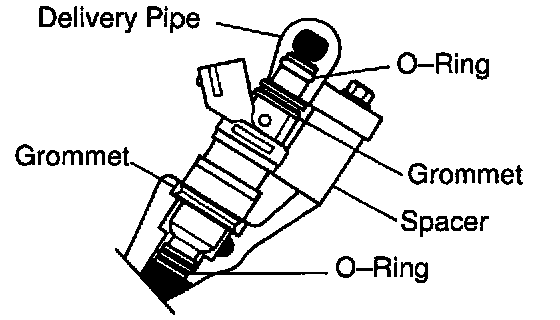 Before installing the injector, must apply spindle oil or gasoline on the place where a delivery pipe or an intake manifold touches an O-ring of the injector.