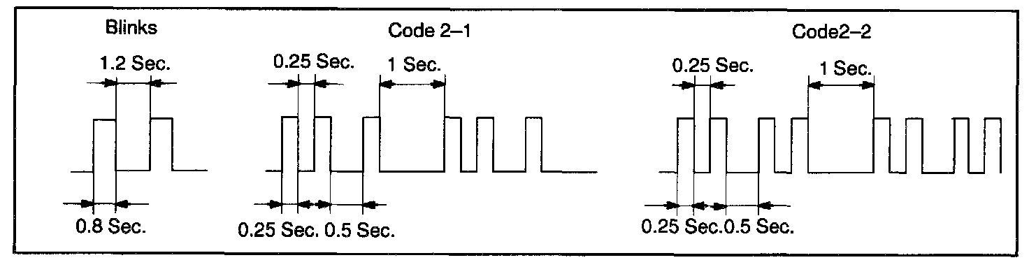 - When key code registration could not be performed on the automatic registration mode, code 2-1 is output from the security indicator and when inserting the already registered key, code 2-2 is output.