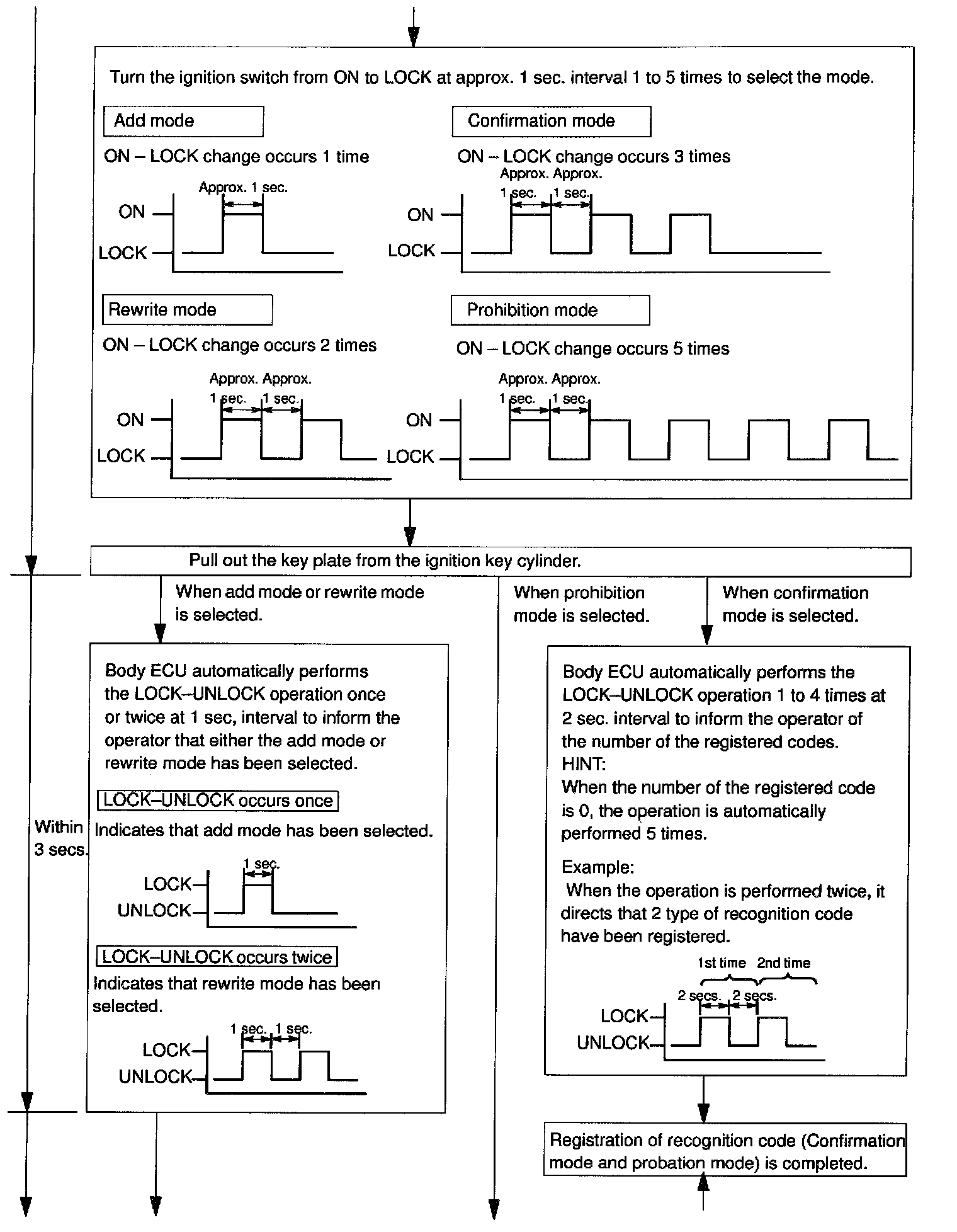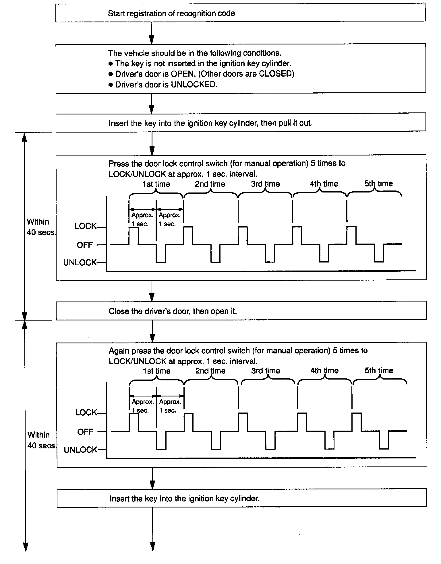 b. Follow the chart on the following page to register the transmitter recognition code at the back door ECU.