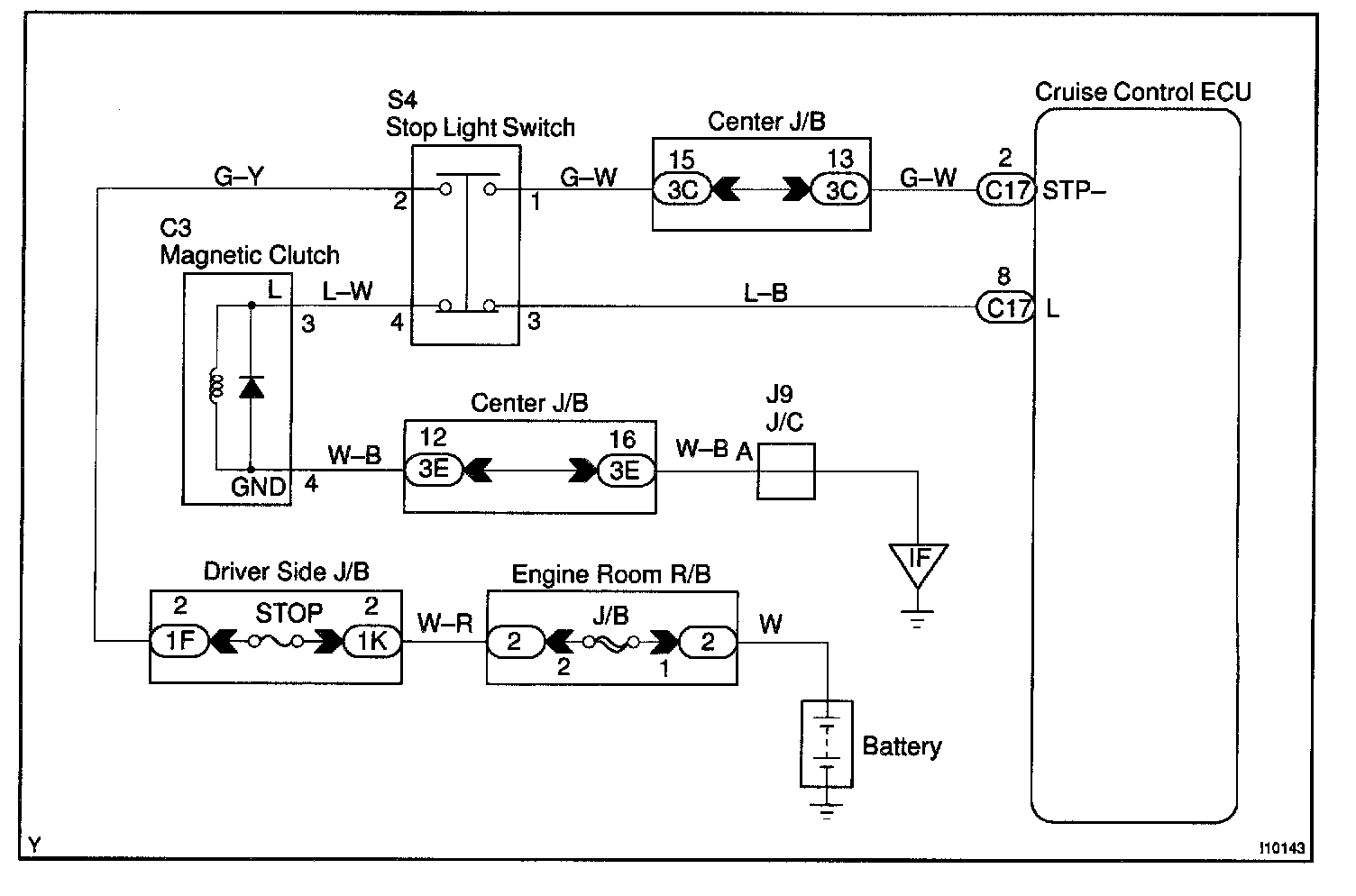 Also, when the brake is ON, the magnetic clutch is cut mechanically by the stop light switch, turning the cruise control OFF.