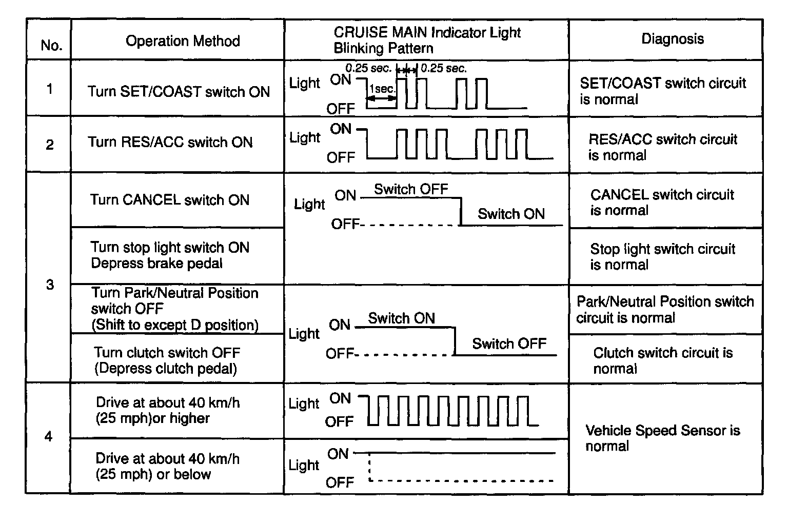 f. Read the blinking pattern of the CRUISE MAIN indicator light.