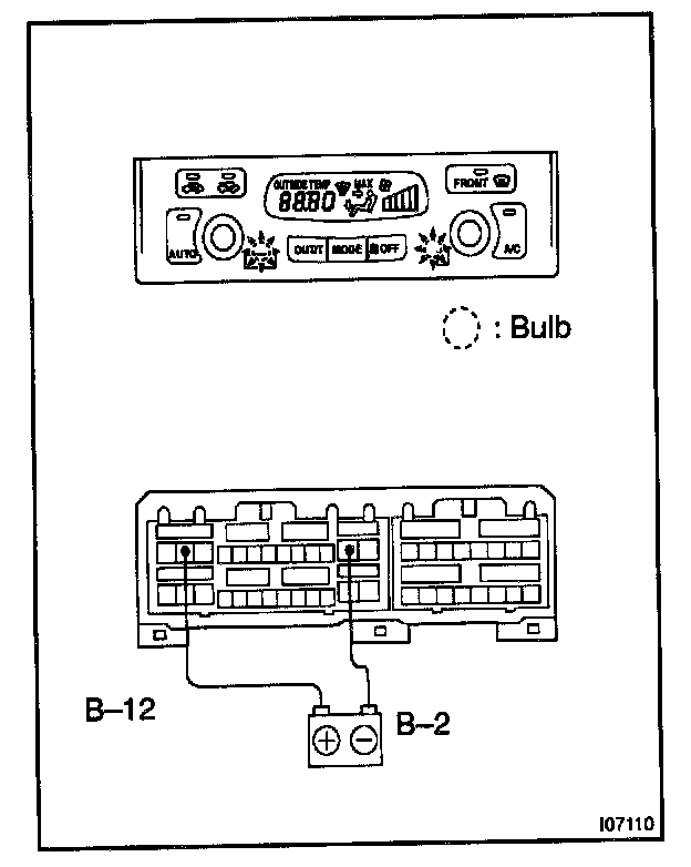 Connect the positive (+) lead from the battery to terminal B-12 and the negative (-) lead to terminal B-2, then check that the illumination lights up.