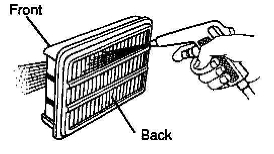 First blow from the inside thoroughly, then blow oft the outside of the air filter.