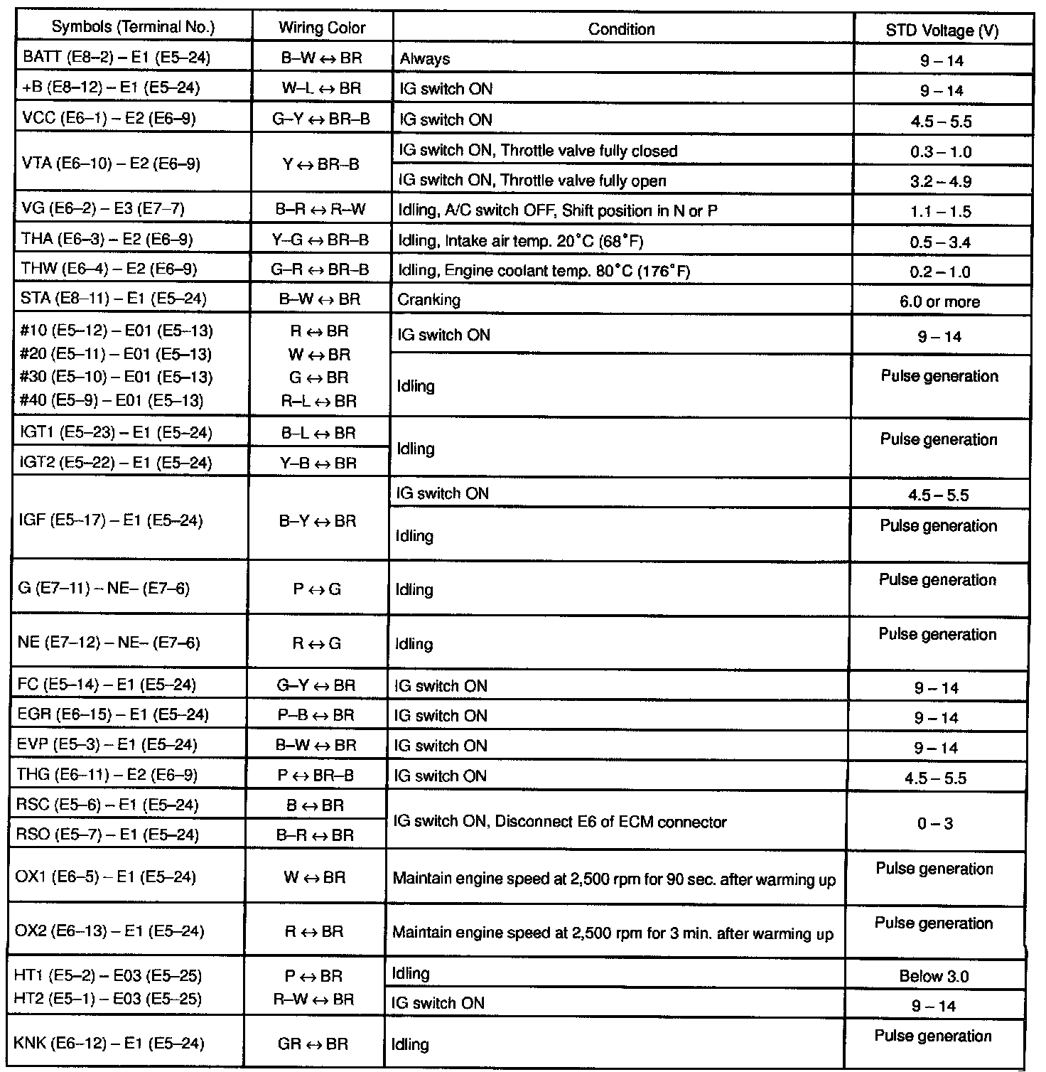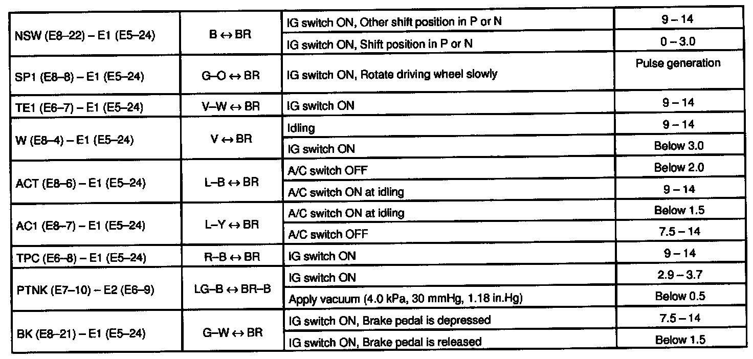 Pinout Values and Diagnostic Parameters
