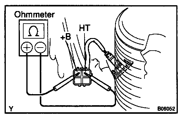 b. Using an ohmmeter, measure the resistance between terminals +B and HT