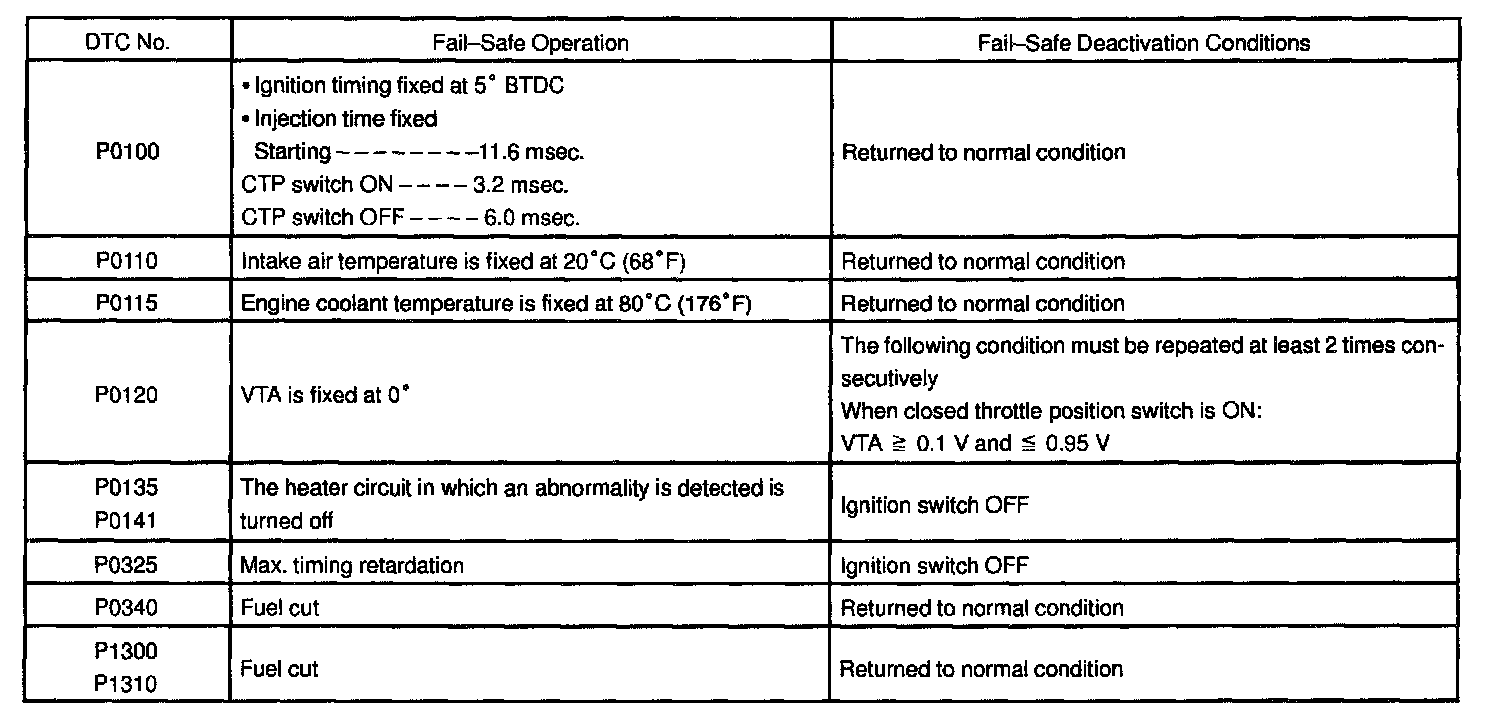If any of the codes is recorded, the ECM enters fail-safe mode.