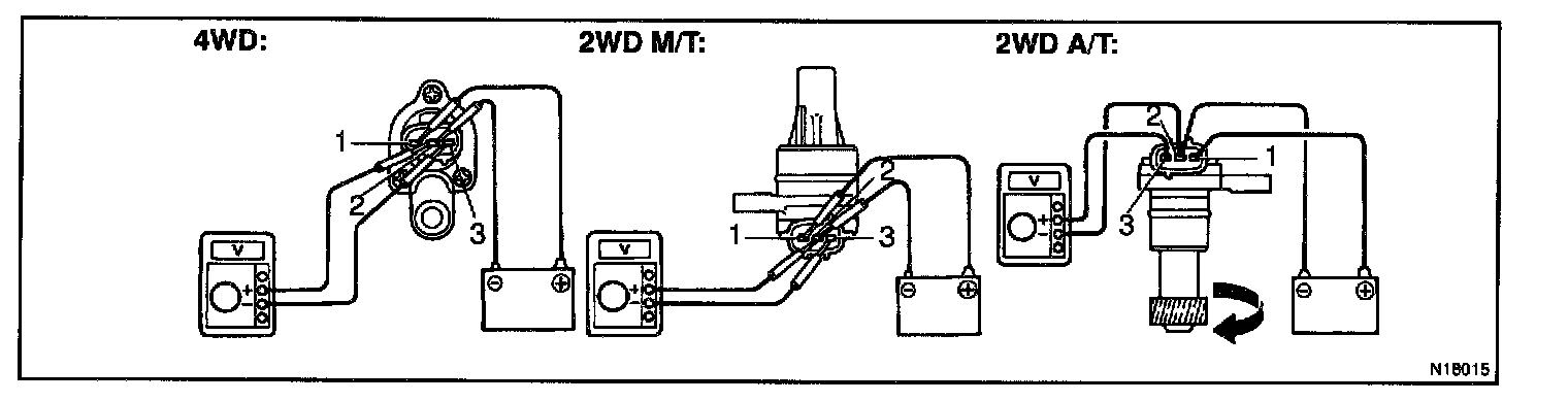 d. Check that there is voltage change from approx. 0 V to 11 V or more between terminals 2 and 3.