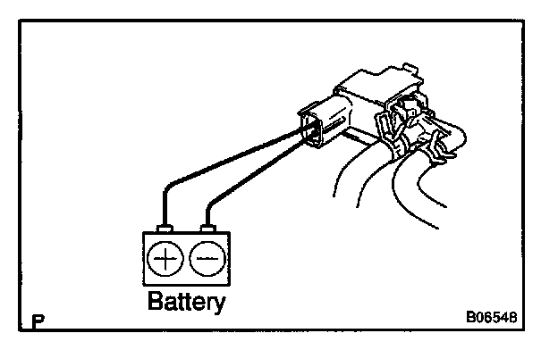 2. Connect the positive (+) and negative (-) leads from the battery to the VSV terminals for the EVAP.