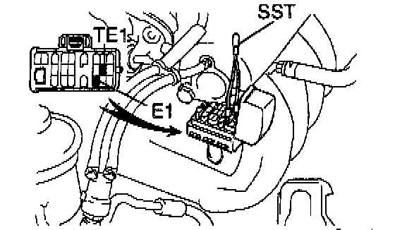 a) Using SST, connect terminals TE1 and E1 of the DLC1.