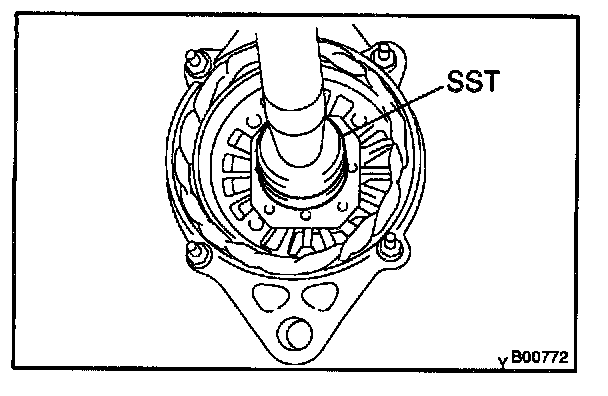 Using an ohmmeter, check that there is no continuity between the slip ring and rotor.