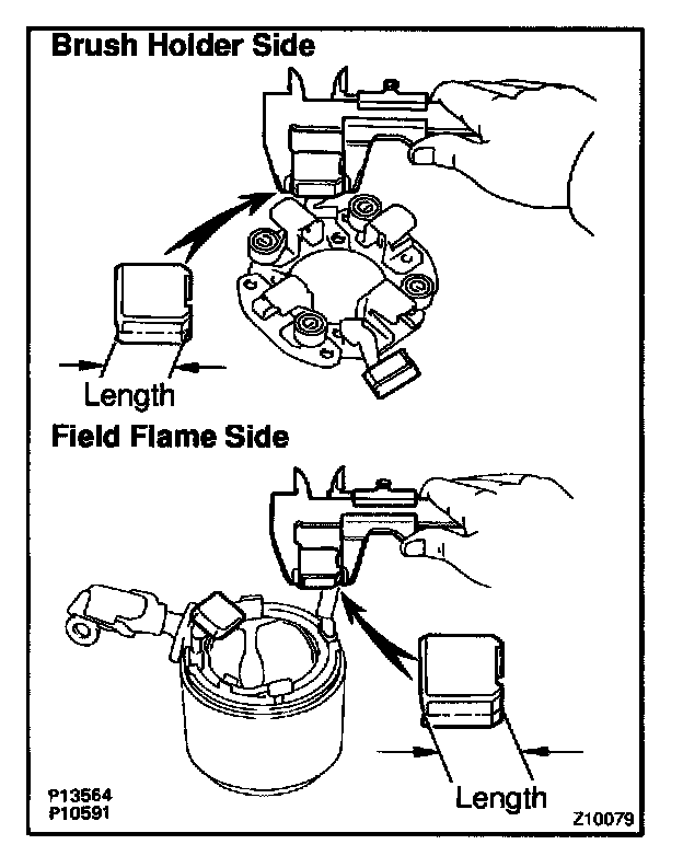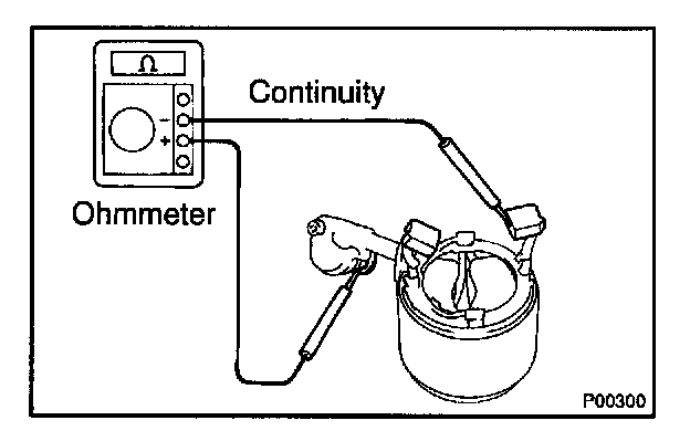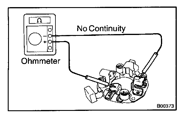 Using an ohmmeter, check that there is no continuity between the positive (+) and negative (-) brush holders.