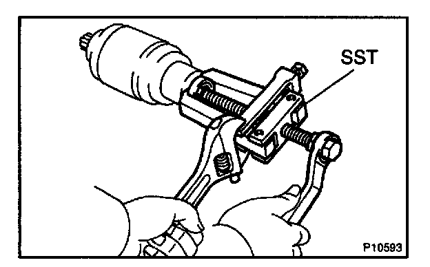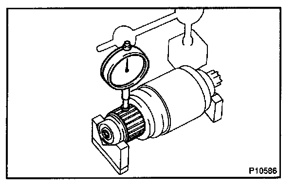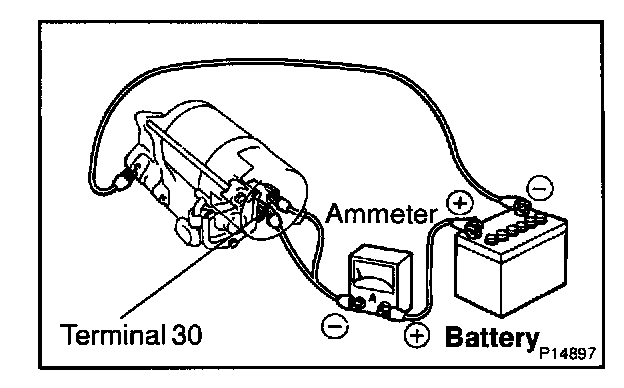 b. Check that the starter rotates smoothly and steadily with the pinion gear moving out. Check that the ammeter reads the specified current.
