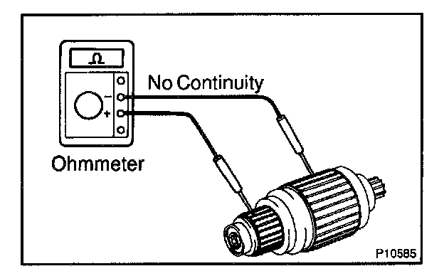Using an ohmmeter, check that there is no continuity between the commutator and armature coil core.