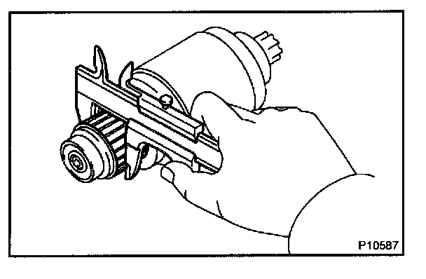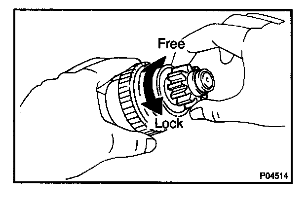 Hold the starter clutch and rotate the clutch pinion gear clockwise and check that it turns freely. Try to rotate the clutch pinion counter clockwise and check that it locks.