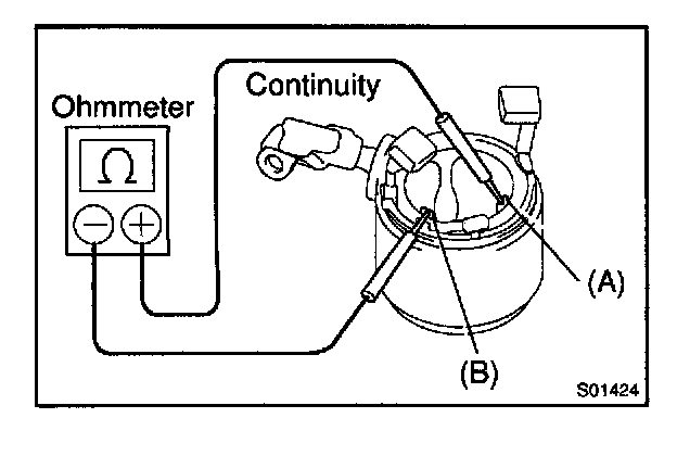 Using an ohmmeter, check that the resistance between the shunt terminal (A) and shunt terminal (B).