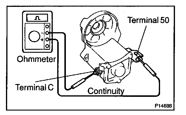 Using an ohmmeter, check that there is continuity between terminals 50 and C.