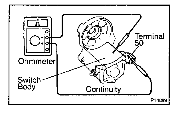 Using an ohmmeter, check that there is continuity between terminal 50 and the switch body.
