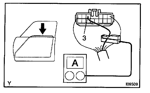 b. Connect the positive (+) lead from the ammeter to terminal 1 on the wire harness side connector and the negative (-) lead to negative terminal of the battery.
