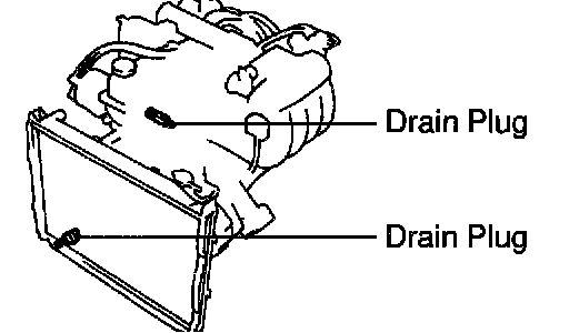 b) Drain the coolant from the radiator and cylinder drain plugs. (Engine coolant drain plug at the right of cylinder block.)