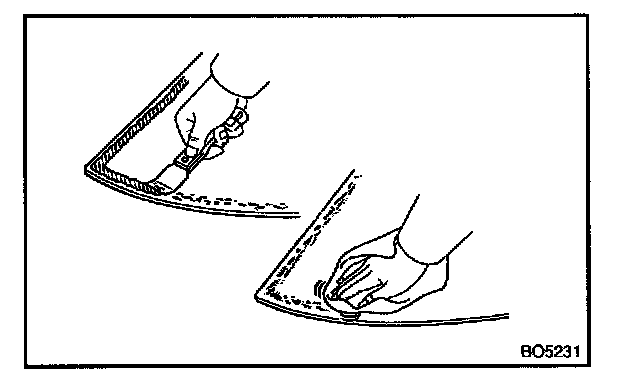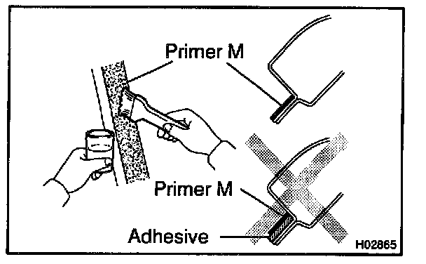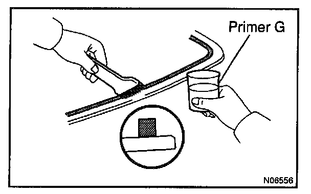 a. Using a brush or sponge, coat the edge of the glass and the contact surface with Primer G.