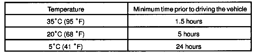 NOTE: Take care not to drive the vehicle during the time described in the table.
